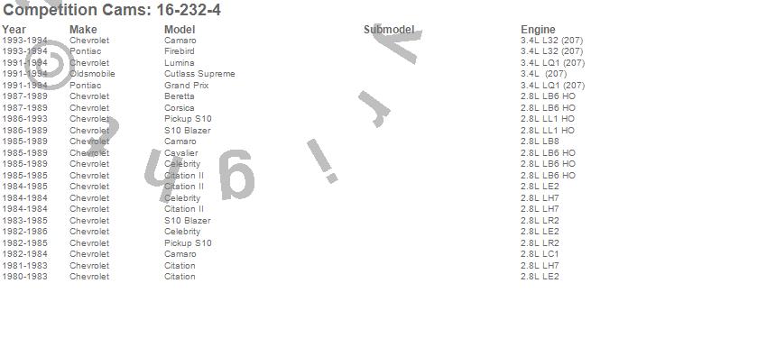 Below is an abreviated list of applications for the High Energy Camshaft.