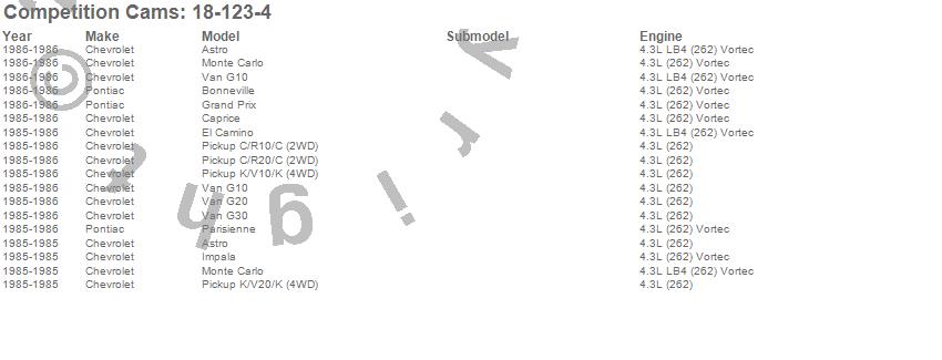 Below is an abreviated list of applications for the High Energy Camshaft.