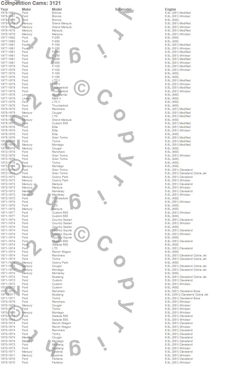 Bronco, Colony Park, Continental, Cougar, Country Sedan, Country Squire, Custom, Custom 500, Cyclone, Elite, F-100, F-150, F-250, F-350, Fairlane, Galaxie 500, Gran Torino, Grand Marquis, LTD, LTD II more…