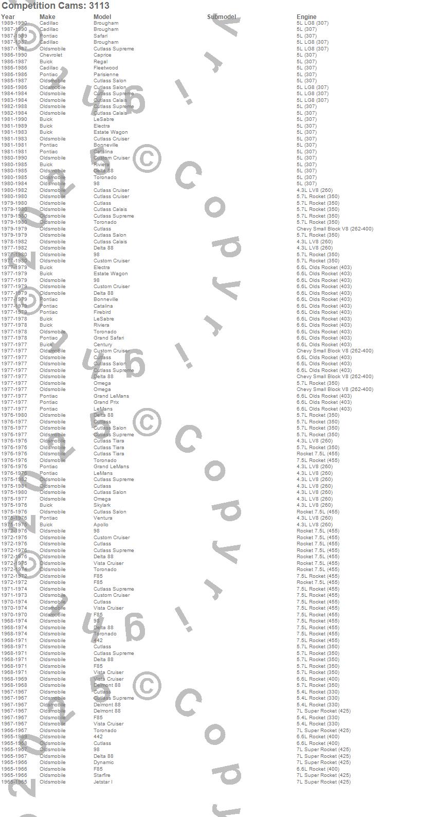 442, 98, Apollo, Bonneville, Brougham, Caprice, Catalina, Century, Custom Cruiser, Cutlass, Cutlass Calais, Cutlass Cruiser, Cutlass Salon, Cutlass Supreme, Cutlass Tiara, Delmont 88, Delta 88, Dynamic, Electra, Estate Wagon more…