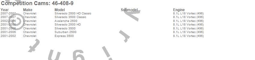 Below is an abreviated list of applications for the Xtreme Energy Camshaft.
