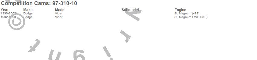 Below is an abreviated list of applications for the Xtreme Energy Camshaft.