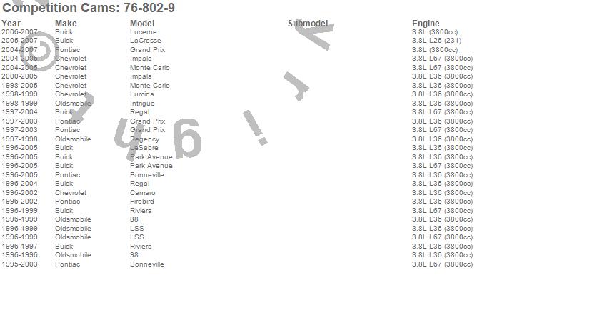 Below is an abreviated list of applications for the Xtreme Energy Camshaft.