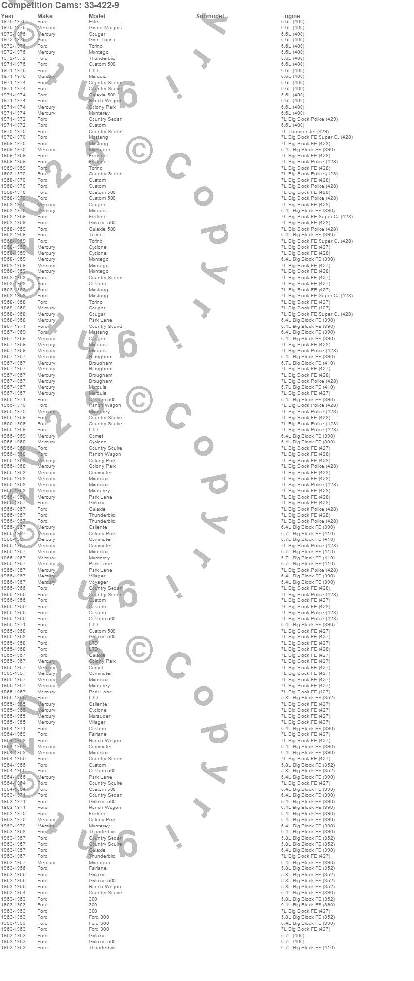 Below is an abreviated list of applications for the Xtreme Energy Camshaft.