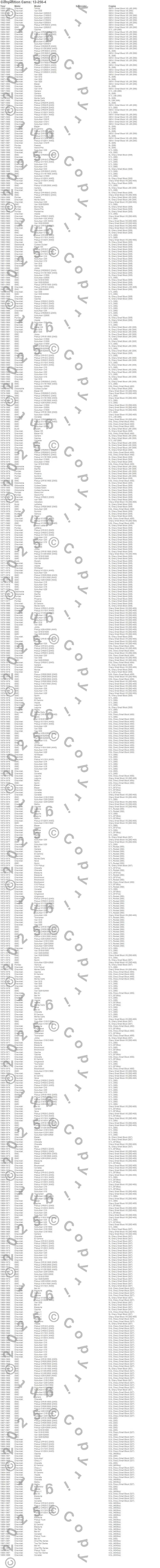 Below is an abreviated list of applications for the Xtreme Energy Camshaft.