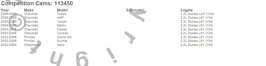 Below is an abreviated list of applications for the Xtreme Energy Camshaft.