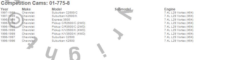 Below is an abreviated list of applications for the Xtreme Energy Camshaft.