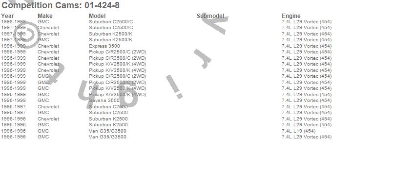 Below is an abreviated list of applications for the Xtreme Energy Camshaft.