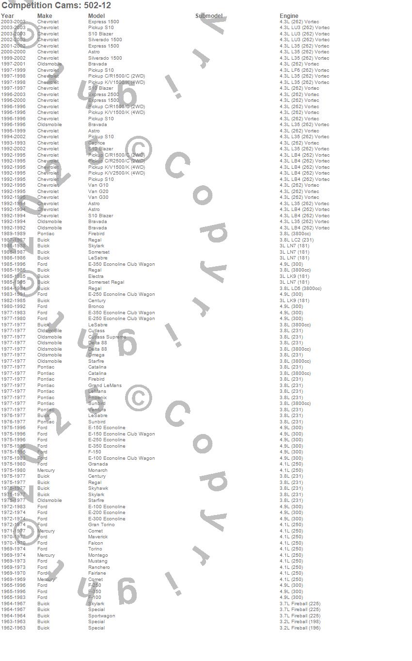 Astro, Bravada, Bronco, C1500, C1500 Pickup, C2500 Pickup, Caprice, Catalina, Century, Comet, Cutlass, Cutlass Supreme, Delta 88, E-100 Econoline, E-150 Econoline, E-150 Econoline Club Wagon, E-200 Econoline, E-250 Econoline, E-250 Econoline Club Wagon, E-300 Econoline more…