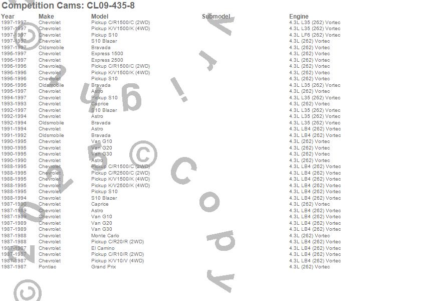 Astro, Bravada, C1500, C1500 Pickup, C2500 Pickup, Caprice, El Camino, Express 1500, Express 2500, G10, G10 Van, G20, G20 Van, G30, G30 Van, Grand Prix, K1500, K1500 Pickup, K2500 Pickup, Monte Carlo more…