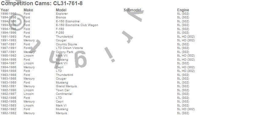 Competition Cams Magnum Camshaft/Lifter Kit CL31-761-8 Features: