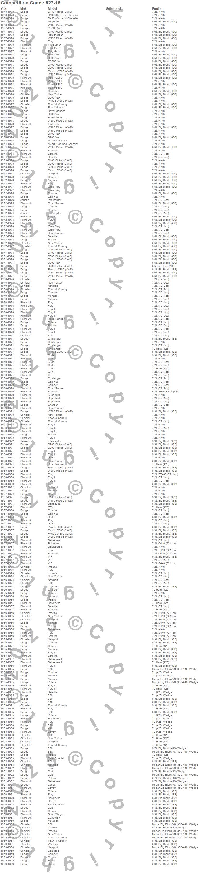 300, 330, 440, 880, B100 Van, B200 Van, B300 Van, Barracuda, Belvedere, Belvedere II, CB300 Van, Challenger, Charger, Cordoba, Coronet, Cuda, Custom, D100 Pickup, D150 Pickup, D200 Pickup more…