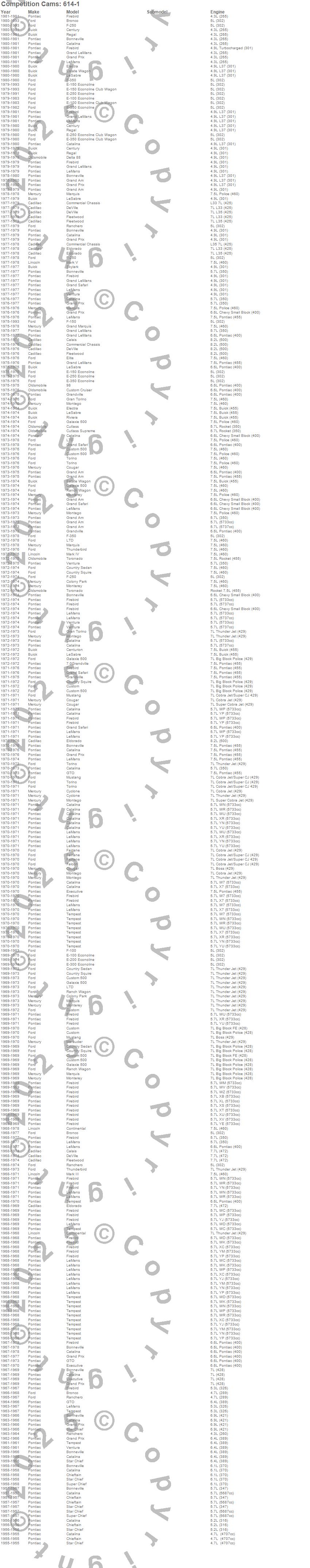 98, Bonneville, Bronco, Calais, Catalina, Catalina Ventura, Centurion, Century, Chieftain, Club Cargo, Colony Park, Commercial Chassis, Continental, Cougar, Country Sedan, Country Squire, Custom, Custom 500, Custom Cruiser, Cutlass more…