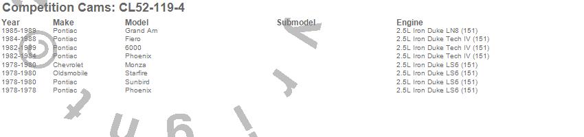 Below is an abreviated list of applications for the High Energy Camshaft/Lifter Kit.