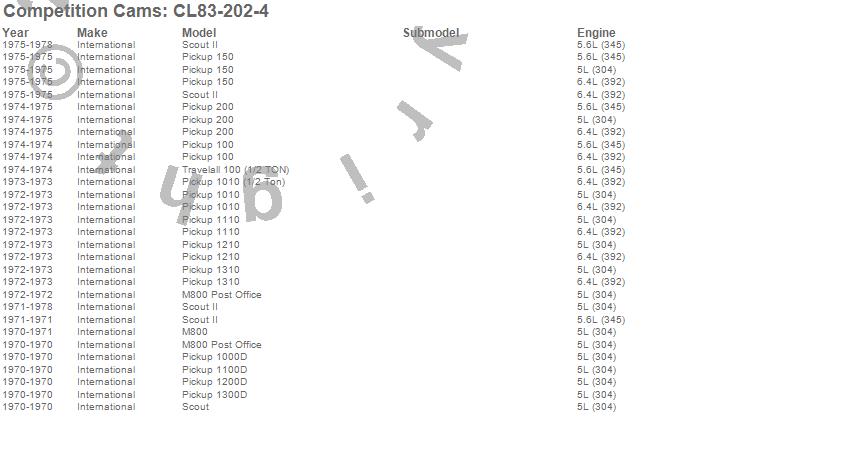Below is an abreviated list of applications for the High Energy Camshaft/Lifter Kit.