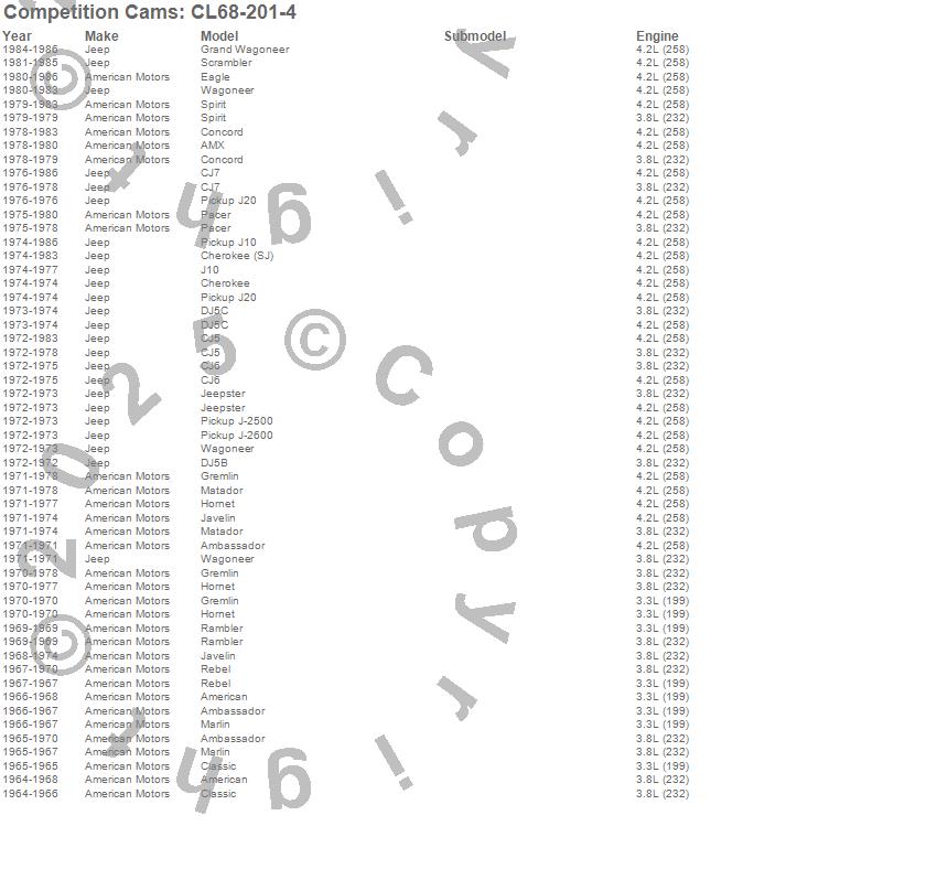 Below is an abreviated list of applications for the High Energy Camshaft/Lifter Kit.