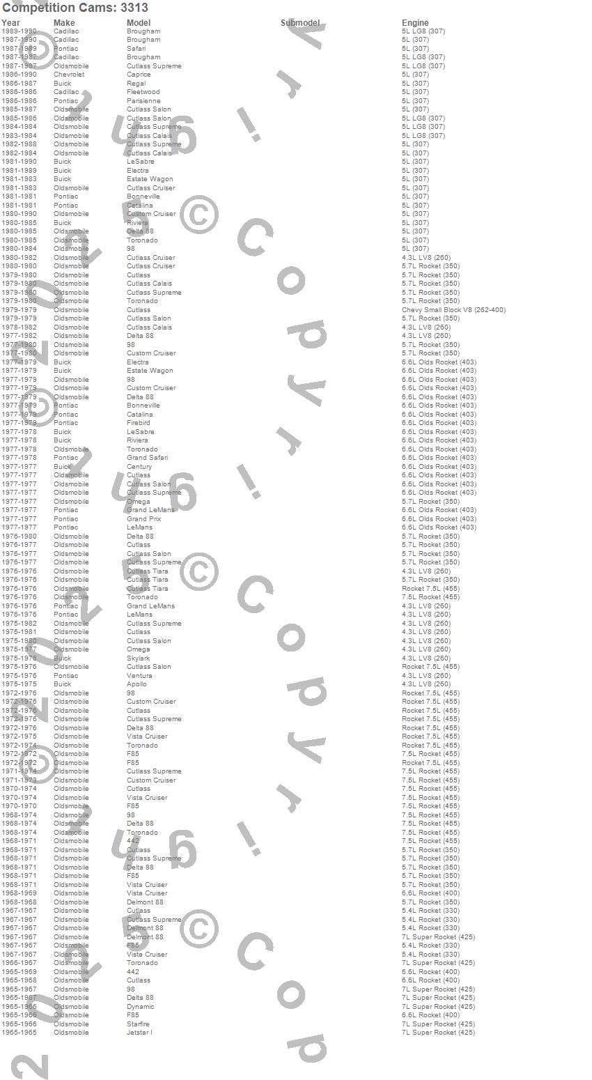 442, 98, Apollo, Bonneville, Brougham, Caprice, Catalina, Century, Custom Cruiser, Cutlass, Cutlass Calais, Cutlass Cruiser, Cutlass Salon, Cutlass Supreme, Cutlass Tiara, Delmont 88, Delta 88, Dynamic, Electra, Estate Wagon more…