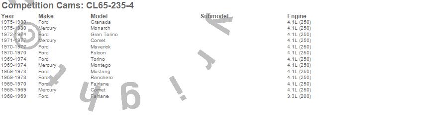 Competition Cams High Energy Camshaft/Lifter Kit CL65-235-4 Features: