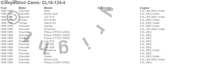Below is an abreviated list of applications for the High Energy Camshaft/Lifter Kit.