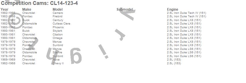 Below is an abreviated list of applications for the High Energy Camshaft/Lifter Kit.