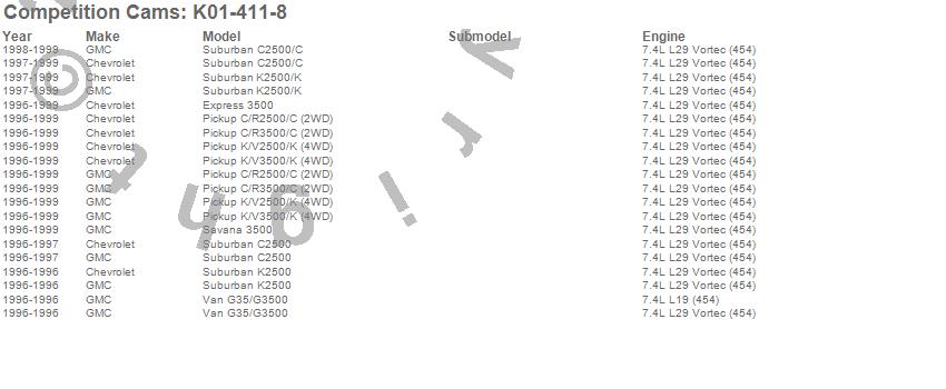 Below is an abreviated list of applications for the Xtreme Energy Camshaft Kit.