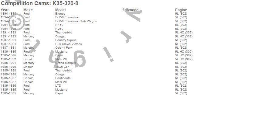Competition Cams Xtreme Energy Camshaft Kit K35-320-8 Features: