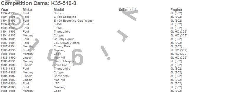 Below is an abreviated list of applications for the Xtreme Energy Camshaft Kit.