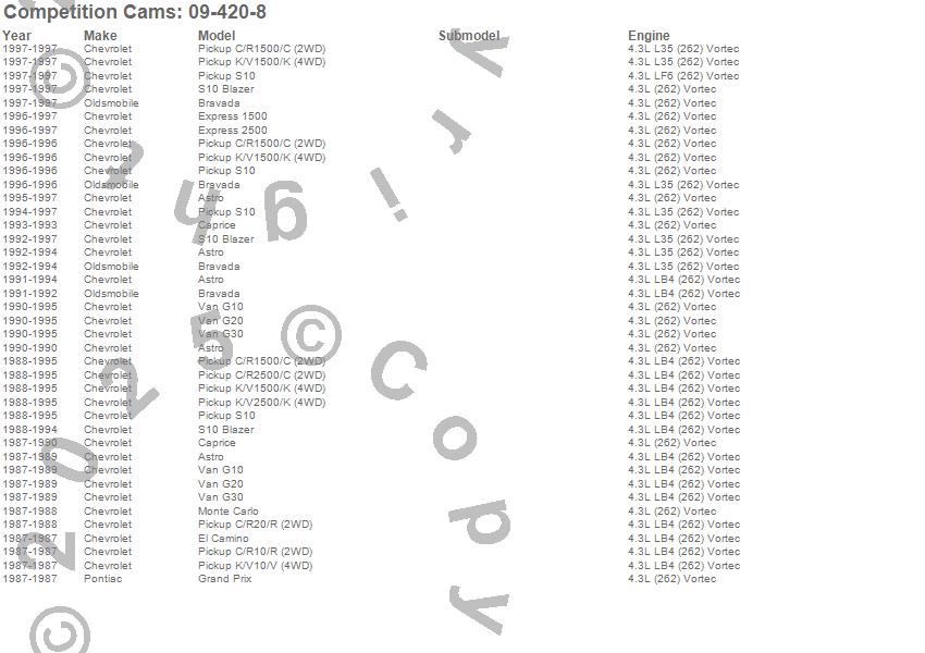 Below is an abreviated list of applications for the Magnum Camshaft.