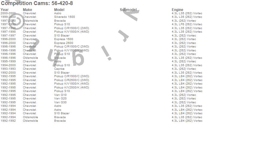 Below is an abreviated list of applications for the Magnum Camshaft.