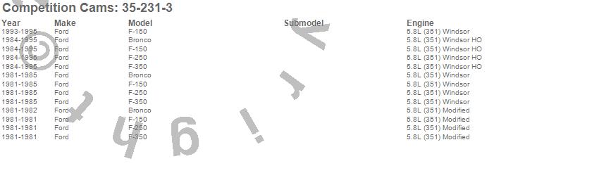 Below is an abreviated list of applications for the Xtreme 4 X 4 Camshaft.