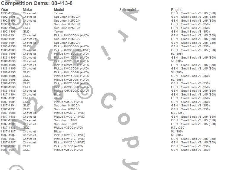 Below is an abreviated list of applications for the Xtreme 4 X 4 Camshaft.