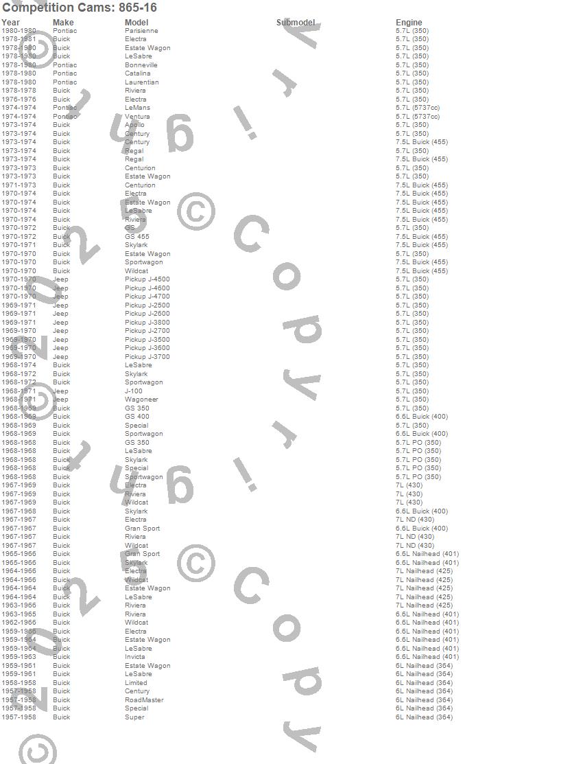 Below is an abreviated list of applications for the Pro Magnum Hydraulic Lifter Set.