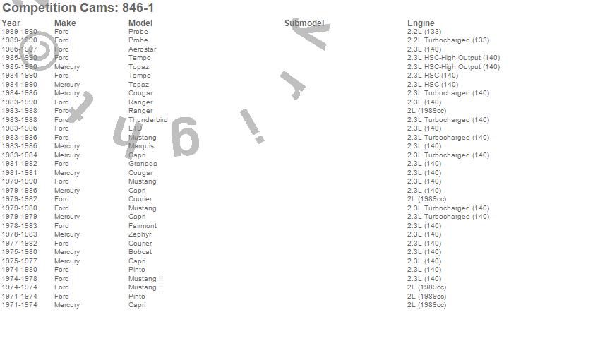 Aerostar, Bobcat, Capri, Cougar, Courier, Fairmont, Granada, LTD, Marquis, Mustang, Mustang II, Pinto, Probe, Ranger, Tempo, Thunderbird, Topaz, Zephyr, Ford, Mercury more…