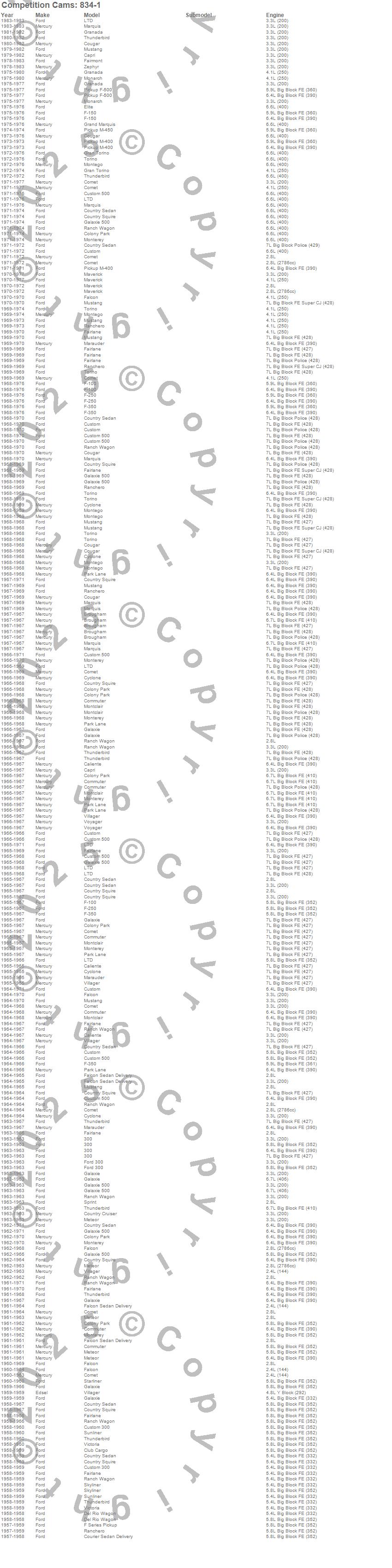Competition Cams High Energy Hydraulic Lifter # 834-1 - Ford 6 Cylinder/V8 - 352-428 - 1 pc.