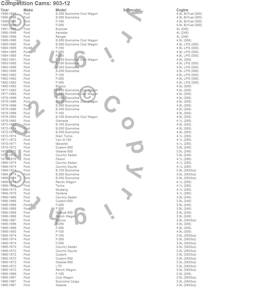 Bronco, Comet, E-100 Econoline, E-150 Econoline, E-150 Econoline Club Wagon, E-200 Econoline, E-250 Econoline, E-250 Econoline Club Wagon, E-300 Econoline, E-350 Econoline, E-350 Econoline Club Wagon, F-100, F-150, F-250, F-350, Fairlane, Falcon, Gran Torino, Granada, Maverick more…