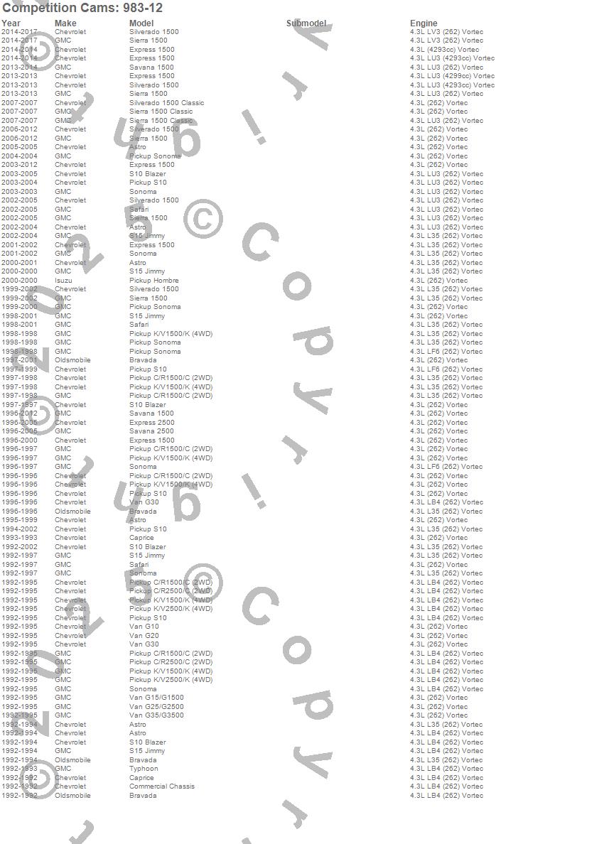 Astro, Bravada, C1500, C1500 Pickup, C2500 Pickup, Caprice, Express 1500, Express 2500, G10, G20, G30, K1500, K1500 Pickup, K2500 Pickup, S10 Blazer, S10 Blazer (Canadian), S10 Pickup, Silverado 1500, Chevrolet, Oldsmobile more…