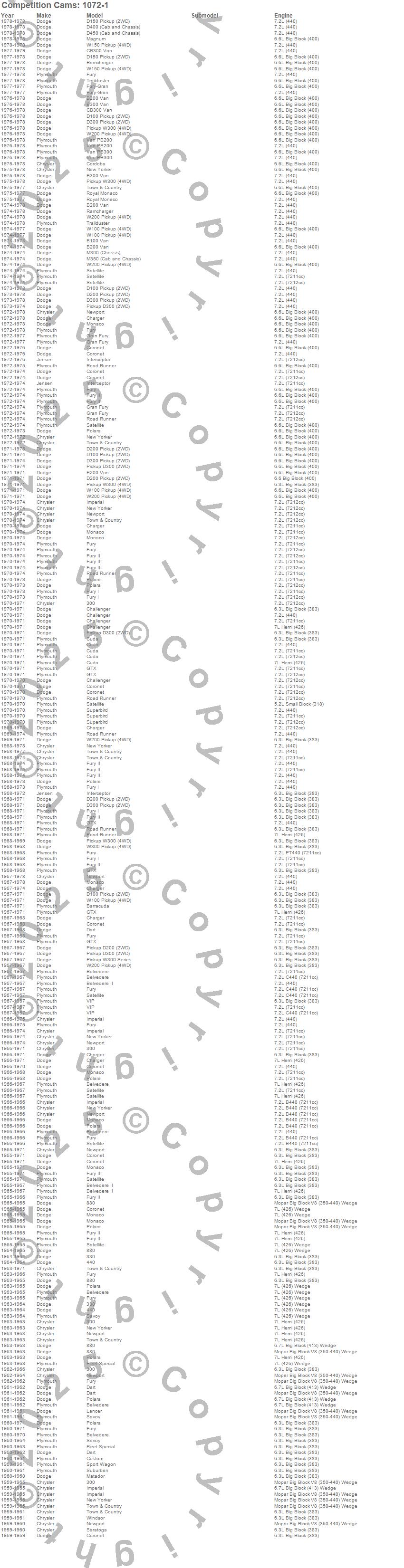 300, 330, 440, 880, B100 Van, B200 Van, B300 Van, Barracuda, Belvedere, Belvedere II, CB300 Van, Challenger, Charger, Cordoba, Coronet, Cuda, Custom, D100 Pickup, D150 Pickup, D200 Pickup more…