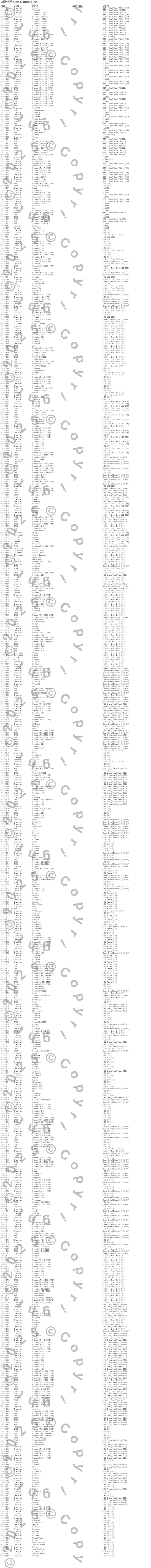Below is an abreviated list of applications for the Small Block Chevy Stud Girdles.