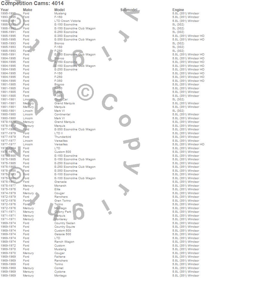 Below is an abreviated list of applications for the Ford Stud Girdles.
