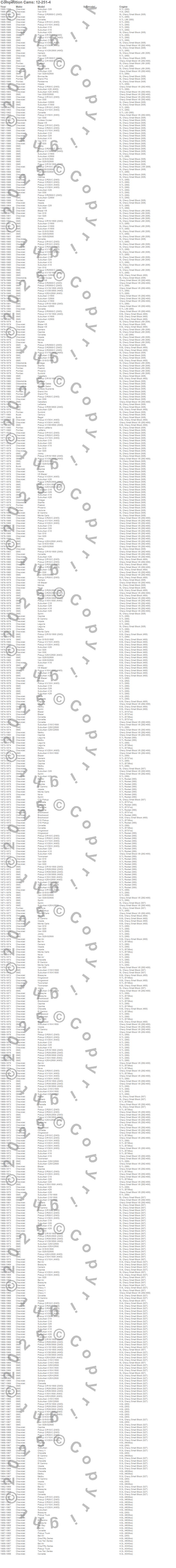 Below is an abreviated list of applications for the Xtreme Turbo Camshaft.