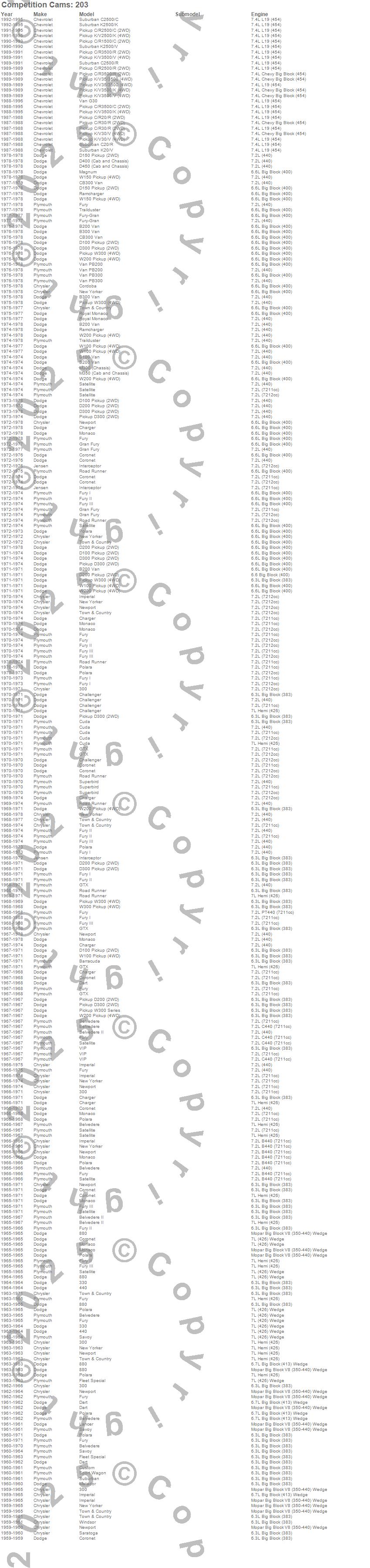 300, 330, 440, 880, B100 Van, B200 Van, B300 Van, Barracuda, Belvedere, Belvedere II, C1500, C1500 Pickup, C2500 Pickup, C2500 Suburban, C3500 Pickup, CB300 Van, Challenger, Charger, Cordoba, Coronet more…