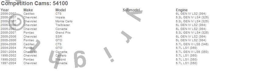 Below is an abreviated list of applications for the RPM Valvetrain Upgrade Kit.