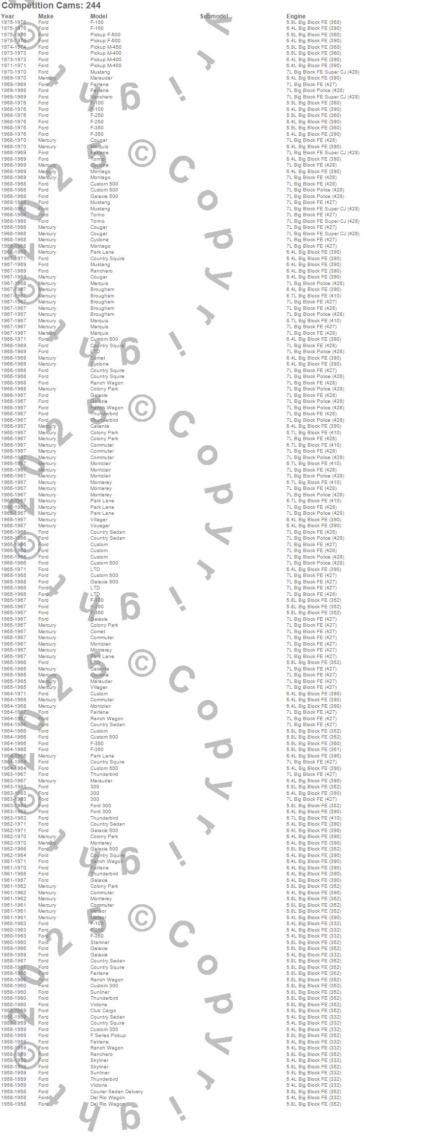 Breezeway, Brougham, Caliente, Club Cargo, Colony Park, Comet, Commuter, Cougar, Country Sedan, Country Squire, Courier Sedan Delivery, Custom, Custom 300, Custom 500, Cyclone, Del Rio Wagon, F Series, F-100, F-150, F-250 more…