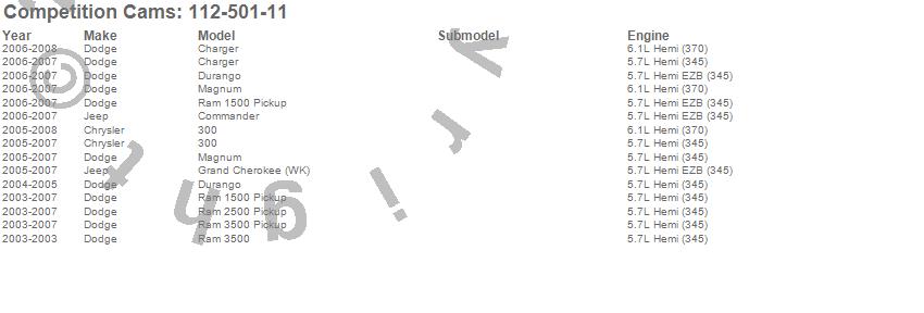 Below is an abreviated list of applications for the Xtreme Fuel Injection Camshaft.