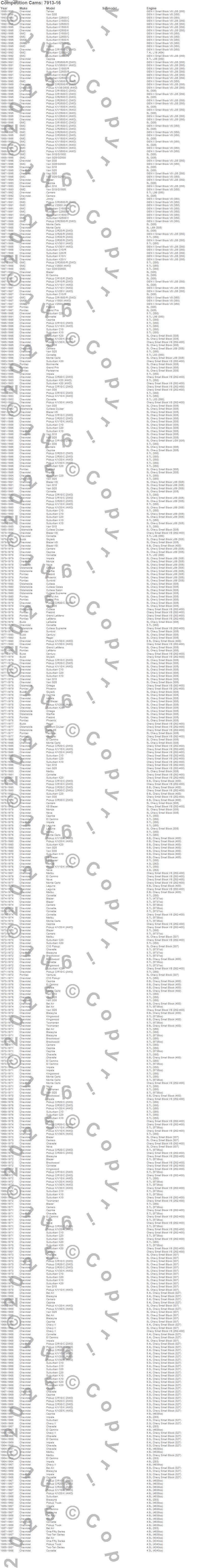 Bel Air, Biscayne, Blazer, Blazer K5, Bonneville, Brookwood, C10 Pickup, C10 Suburban, C1500, C1500 Pickup, C1500 Suburban, C20 Pickup, C20 Suburban, C2500 Pickup, C2500 Suburban, C30 Pickup, C3500 Pickup, Camaro, Caprice, Century more…