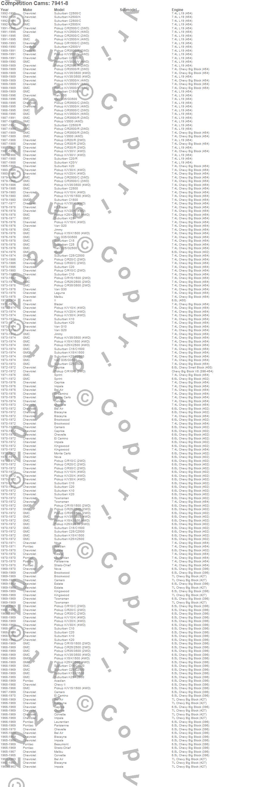 Below is an abreviated list of applications for the Hi-Tech Push Rods.