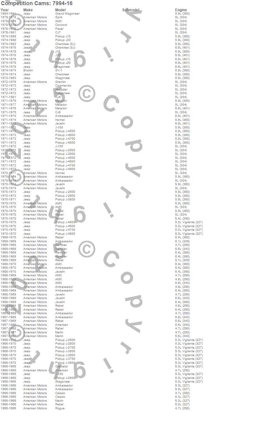 Below is an abreviated list of applications for the Hi-Tech Push Rods.