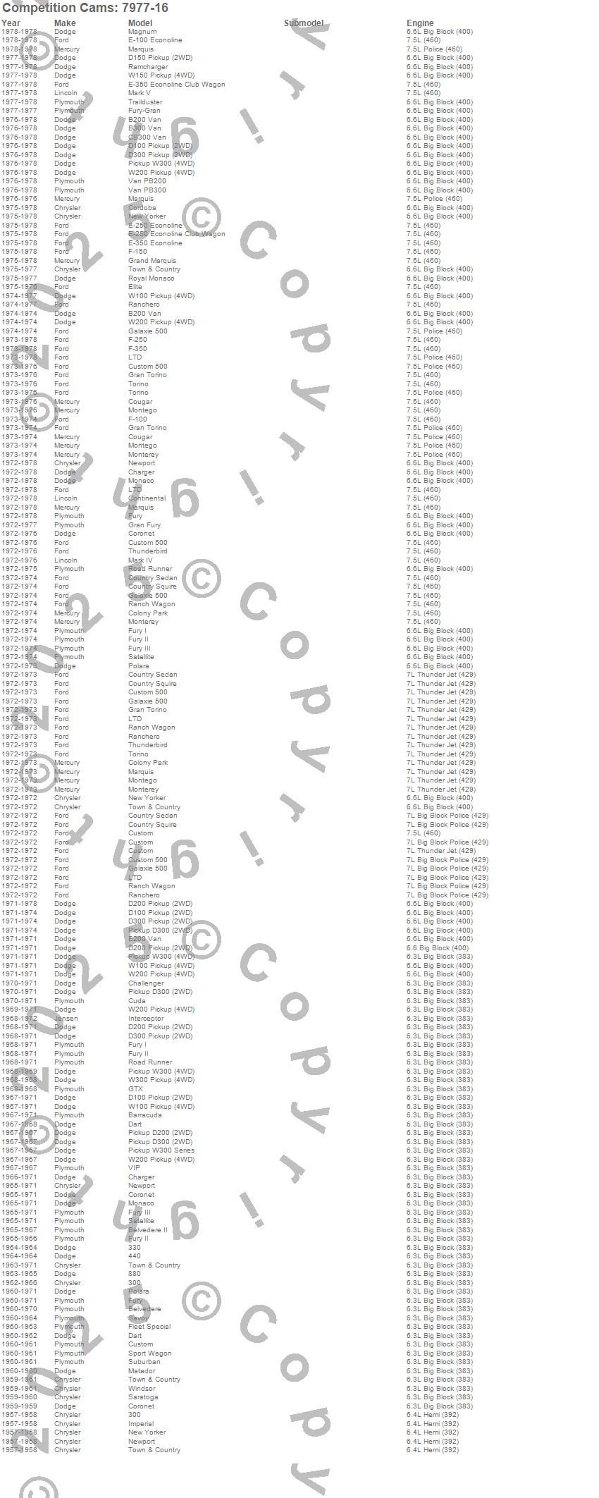 Below is an abreviated list of applications for the Hi-Tech Push Rods.