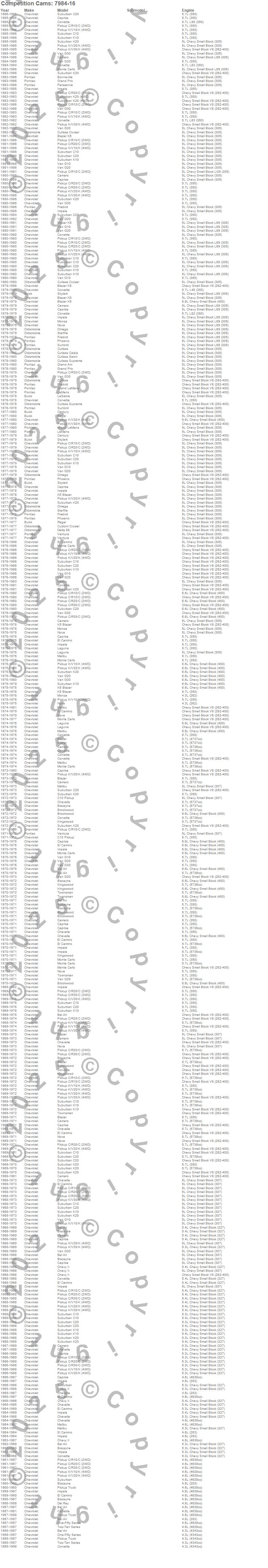 Below is an abreviated list of applications for the Hi-Tech Push Rods.