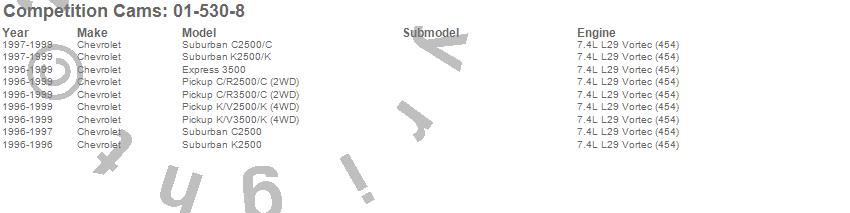 Below is an abreviated list of applications for the Tri-Power Xtreme Camshaft.